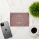Announce your wedding date and location in chic modern style with these sleek save the date cards featuring abstract yet geometric detailing on an earth toned dark mauve background. Front features your wedding details in minimalist modern lettering, encircled by irregular sphere shapes in elegant rose gold. Add additional details, like your wedding website, to the back.