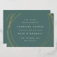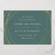 Announce your wedding date and location in chic modern style with these sleek save the date cards featuring abstract yet geometric detailing on a nature inspired beryl green background. Front features your wedding details in minimalist modern lettering, encircled by irregular sphere shapes in elegant rose gold. Add additional details, like your wedding website, to the back.