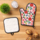 Modern Spring Garden Butterfly Floral Oven Mitt & Pot Holder Set