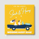 Celebrate your big day with this modern yellow wedding guest book featuring a bold square cover design. The front shows a stylish cabriolet with the newlyweds, along with customisable names and wedding date, making it a truly personal keepsake. On the back, festive champagne glasses and the fun phrase “Sip, sip hooray!” add a playful touch. Designed in a contemporary flat illustration style, this personalised wedding guest book is perfect for couples who want a unique, vibrant, and unforgettable detail at their wedding celebration.