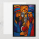 Celebrate the spirit of Epiphany with this striking stained glass-style artwork featuring the Three Wise Men. Rendered in bold lines and radiant jewel tones—royal blue, fiery orange, and deep purple—each figure carries symbolic gifts in a modern interpretation of the Nativity story. Perfect for holiday decor, religious gifts, or cultural collections, this design blends sacred tradition with contemporary elegance. Ideal for prints, cards, apparel, and seasonal signage.