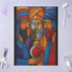 Celebrate the spirit of Epiphany with this striking stained glass-style artwork featuring the Three Wise Men. Rendered in bold lines and radiant jewel tones—royal blue, fiery orange, and deep purple—each figure carries symbolic gifts in a modern interpretation of the Nativity story. Perfect for holiday decor, religious gifts, or cultural collections, this design blends sacred tradition with contemporary elegance. Ideal for prints, cards, apparel, and seasonal signage.