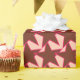 Giant overlapping stars form a Mid-Century Modern geometric tiled pattern - milk chocolate brown stars with a soft peach pink background and a hot pink outline
