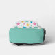 Modern Star Pattern Pink Mint Personalised Name Backpack features a modern star pattern in pink, yellow, mint and blue on a white background with your personalised name, monogram or text. Perfect for school, sports, gym, travel and more. Designed by ©Evco Studio www.zazzle.com/store/evcostudio