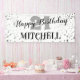 Happy Birthday banner featuring a background of silver stars, age and name.
