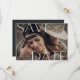 Announce your wedding date in unforgettable style with these elegant and modern photo save the date cards, featuring a full bleed horizontal or landscape orientated photo with "save the date" overlaid in white lettering at the corners. Your wedding date appears inside the letter D, with your names and wedding location alongside. Personalise the back with additional details, such as your wedding website.