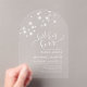 Sparkling silver string lights are the focal point for all the pieces of this simple wedding suite that also features elegant calligraphy and modern design layouts. The arch-shaped acrylic invitation shown here features the above plus optional 'best day ever' text and a template to easily add your event details. Search ID585 to see all the matching pieces in this beautiful wedding set.