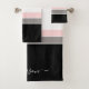 Modern Stripe Black Pink Grey Monogram Bath Towel Set