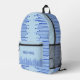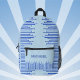 Modern stripe pattern on pale blue, personalizable printed backpack