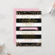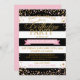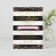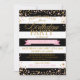 Bold black and white stripe with tossed pink and gold glitter dots modern birthday party invitation card design.