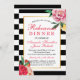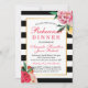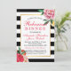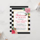 Modern Floral Peony Black White Stripes Rehearsal dinner Invitation.