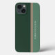 Elegant and modern custom name phone case striped with vertical colour blocks in dark green, khaki brown, and light green.