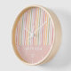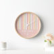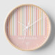 Wall clock with trendy light striped pattern. Personalise it with your name. Girly colours perfect for little girls bedroom.