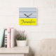 Modern white, blue and yellow striped pattern with custom name