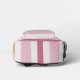 Clean lines, soft colour, and a personal touch — this modern striped backpack blends simplicity with charm. Featuring a repeating pattern of horizontal stripes in a warm, muted palette of peach, bright pink, lavender, and crisp white, this design is perfect for those who love a minimalist look with a playful twist.