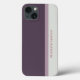 Elegant and modern custom name phone case striped with vertical colour blocks in dark and light purple and fog grey.
