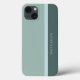 Elegant and modern custom name phone case with matte-coloured light teal, baby blue, and dark teal vertical stripes.
