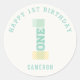 Modern Stripes Big Number ONE 1st Birthday Party Classic Round Sticker