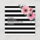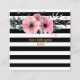 Personalised business card template for you to customise featuring a chic black and white striped design with a floral motif. Your name and title are in an elegant gold text giving it a modern and stylish image. The reverse features the black and white stripes with the floral motif in the right top corner with your contact details. Flowers image created by Freepik. Designed by Thisisnotme©