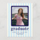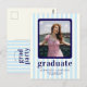Modern Stripes Navy Blue Photo Graduation Party Postcard