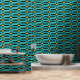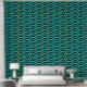 Adding a touch of art and elegance to any room, this unique wallpaper design combines bright green colours with unique geometric patterns. This design is perfect for decorating private and public rooms, adding a touch of art and elegance to any space.