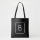 Modern Styled Initial Monogram | White & Black Tote Bag
