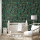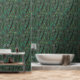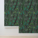 Transform your space with our peel and stick wallpaper.  This contemporary design features stylised trees with sleek black trunks, branching out into a lush canopy of leaves. The leaves, depicted in varying shades of green from olive to mint, exude a modern, hand-painted charm. Against the dark grey background, this wallpaper strikes a harmonious balance between nature-inspired aesthetics and minimalist sophistication. The graphic style is minimalist yet captivating. Each leaf appears as if it were brushed onto the surface with confident strokes, creating an organic and calming effect. The muted green palette complements a range of decor styles, making it perfect for modern interiors, rustic chic spaces, or even a cosy home office.