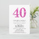 MODERN STYLISH 40TH birthday party pink glitter 40 Invitation