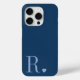 modern stylish blue monogram initial iPhone iPhone 15 pro case.