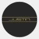 Modern Stylish Editable Gold Text & Stripes Classic Round Sticker