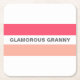 The design features two strips of glamourous pink with a classic font in smokey grey. The message says: Glamourous Granny which can be easily changed.