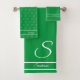 Modern Stylish Kelly Green and White Monogram Bath Towel Set