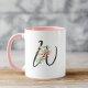 Modern Stylish Letter W Black Script Floral Mug