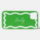 Modern stylish monogram bright green iPhone case with wave style border. Stylish handwritten style script custom name. Select from barely there or tough style cases and protect your iPhone in style.