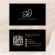 Modern Stylish Monogram QR Code Minimal Black Business Card