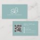 Modern Stylish Monogram QR Code Minimal Teal Business Card