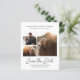 Budget Save the Date template with 3 photos. Modern smooth pen handwritten script text. Completely versatile do-it-yourself style layout. The script text is flat image that cannot be edited, but it can be moved, resized, or rotated to align perfectly with your photos in advanced Customise mode. All other text elements can be fully edited. Other styles and sizes available in store.
