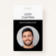 Modern and professional photo badge featuring your photo in a circle frame with trendy minimalist typography. On the back is pace for contact information, web site or social media as well as your custom logo or QR code. This is the black and white version.