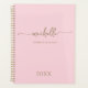 Stylish Modern Feminine Blush Pink Glam Gold Monogram Name Script Signature Custom Personalised 2023 or any year Planner. This minimalist delicate plain colour design featuring your first name in a pretty hand lettered style swash tail font calligraphy (or typography), full name (or family name) and year in gold colour on baby pink or light blush pink colour background. Easy to customise it. Great feminine gift for birthday, bridal shower, mother’s day, wedding, business, sweet 16 birthday, back to school, graduation, professional work and for anyone who loves clean minimalist things.