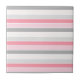 Simple Modern Bold White Grey Pink Stripe Pattern ceramic tile. Super sweet little stripe print featuring cool modern colours. Use vertical or horizontal. Would be adorable in a girls bathroom, or even a kitchen. Whether you want to use this tile as a little coaster or trivet for a drink or plate... or you want to go big with a kitchen backsplash, or bathroom tile, is up to you! Do a full wall, border, or just an accent tile. Let your interior design dreams fly!