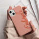This iPhone case features a pink background with a modern stylish red script. Personalise it with your name or initials,