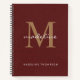 Modern Stylish Script Tweed Red Gold Monogram Notebook