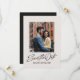 This stylish save the date features a retro inspired script "save the date" under a single photo on a beige background along with simple custom text. The back of this modern save the date has a coordinating black stripe along with a horizontal photo, room for a custom message and a QR code for your wedding website. This vertical design is great for a trendy and stylish couple and it's a great way for the engaged couple to share wedding information with friends and family. Find more colors and styles in the collection by Lea Delaveris Design. Also available as a digital save the date download.