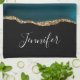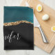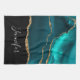 Modern Stylish Teal Agate & Gold Ribbon on Black Tea Towel