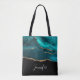 Modern Stylish Teal Agate & Gold Ribbon on Black Tote Bag
