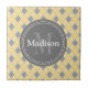 A girly, modern, geometric diamond Moroccan lattice trellis pattern in yellow and grey with a white border outline. This chic graphic pattern also features a circle nameplate for your custom monogram and name. A monogrammed elegant gift for women that love cool designer patterns in a stylish colour palette.