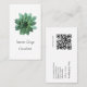 Interior Designer QR code business card, with a modern succulent design and black typography. With customizable text, you can add your own information. You also add your website to the QR code field for more promotion. Great for adding a boho botanical touch to your interior design or stylist business.