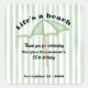 Celebrate a 50th milestone in breezy coastal style with this elegant summer birthday party Thank you stickers, featuring soft watercolor green-and-white stripes, a playful beach umbrella centerpiece, and the cheerful phrase “Life’s a Beach” in a vintage-inspired font, with flowing script details for an effortlessly chic finish—fully customizable for your special event.