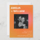This wedding save the date card pairs a bold orange and pink sunset gradient with a candid engagement photo for a modern, high-energy announcement. The front features a strong typographic layout with your photo centered, while the back includes space for a second image for a full storytelling moment. The clean design and vibrant summer palette feel confident, stylish, and effortlessly contemporary. A beautiful choice for couples planning a city wedding, rooftop celebration, or modern summer event.