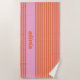 Modern Summer Pink Orange Striped Personalized Beach Towel